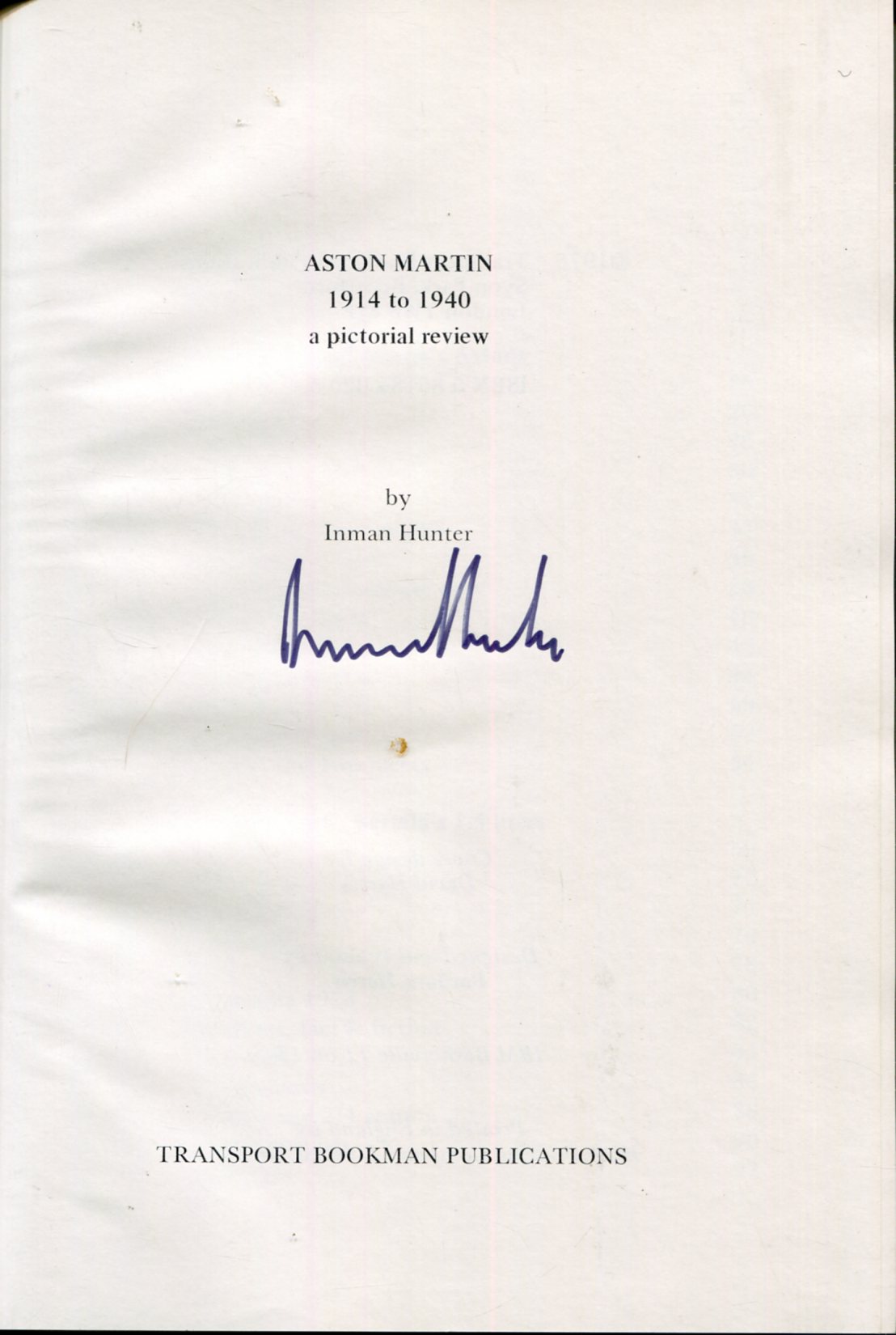 SIGNED by Inman Hunter to the title page as shown.