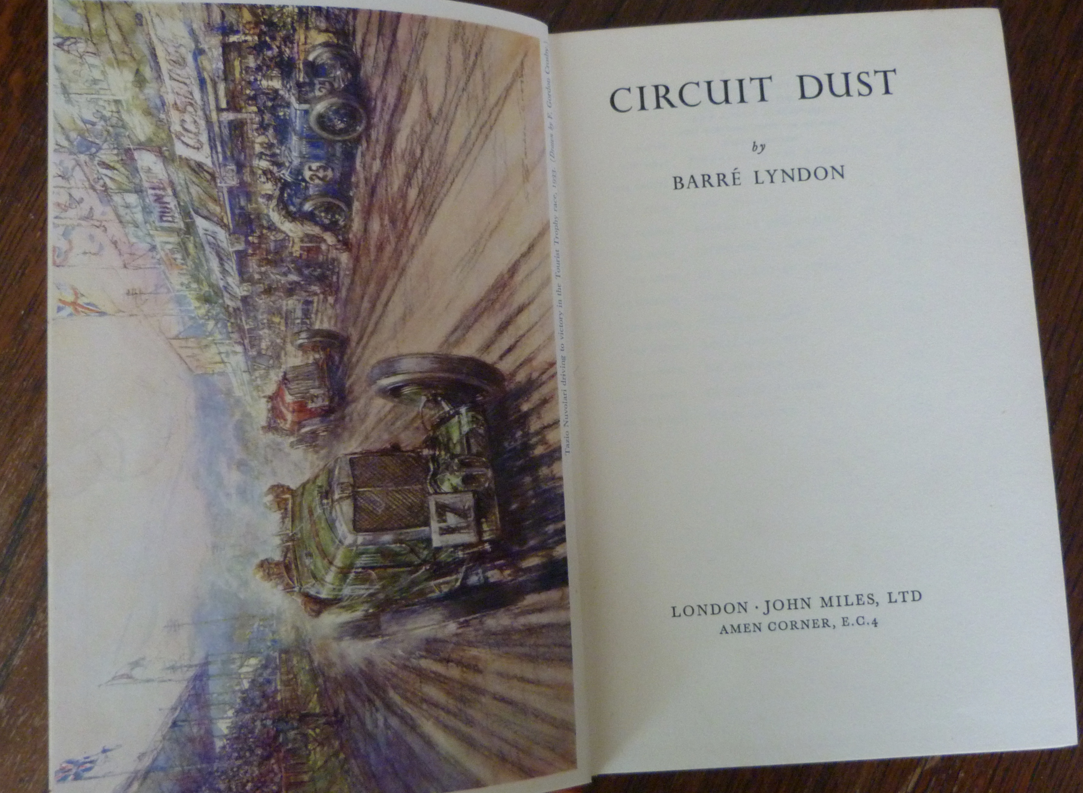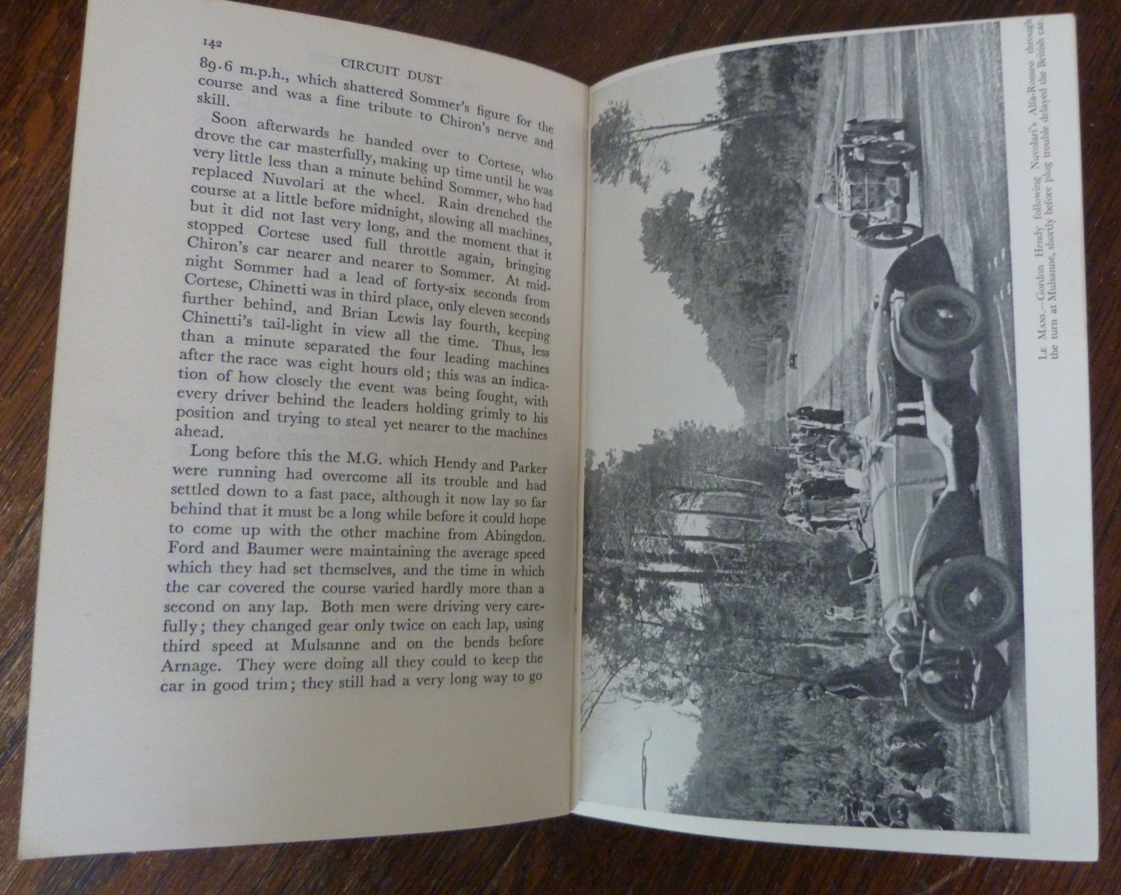 Sought-after pre-war history, illustrated. Hardbound with dust jacket. 15cm x 22.5cm. The book itself is in very good condition indeed, the binding is good and tight, there is only very minor foxing to the edges of the page block. This example is made even more desirable as it retains its dust jacket with the fabulous colour illustration of MG, Delage and Alfa Romeo racing cars. It has some small pieces missing to the back and several repaired tears. A rare opportunity.